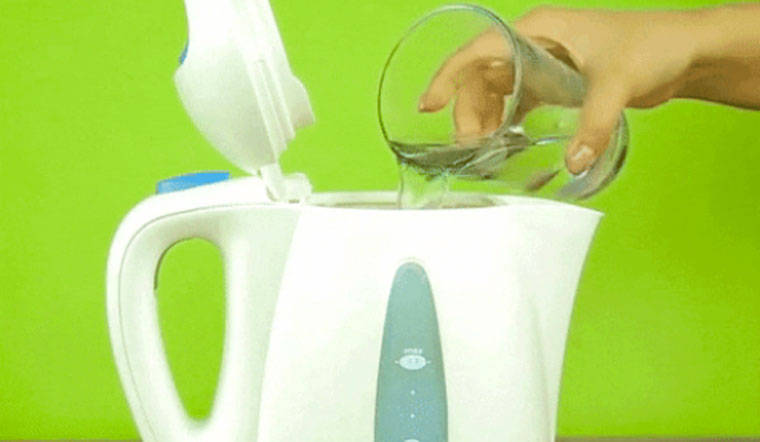 Bạn cho một ly nước đầy vào trong bình đun siêu tốc, cho tiếp vào đó một vài lát chanh.