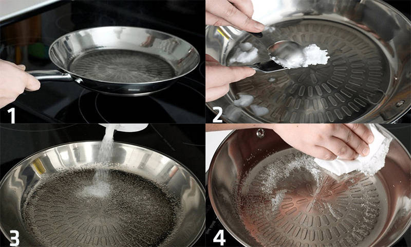 Bước 4: Lau sạch muối, dầu và sử dụng để chiên thức ăn như bình thường.