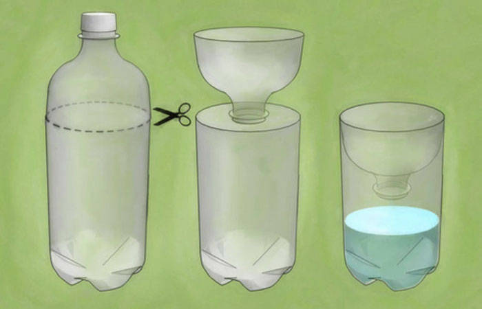 Bắt đầu thực hiện bạn hãy đun hỗn hợp đường và nước, nhớ đun nhỏ lửa vì đường dễ bị cháy. Tiếp theo cắt chai theo hình và lật úp đầu chai hướng xuống, gắn vào thân chai. Cuối cùng bạn cho nước đường vào chai, sao cho mặt nước cách miệng chai 1 khoảng đấy.