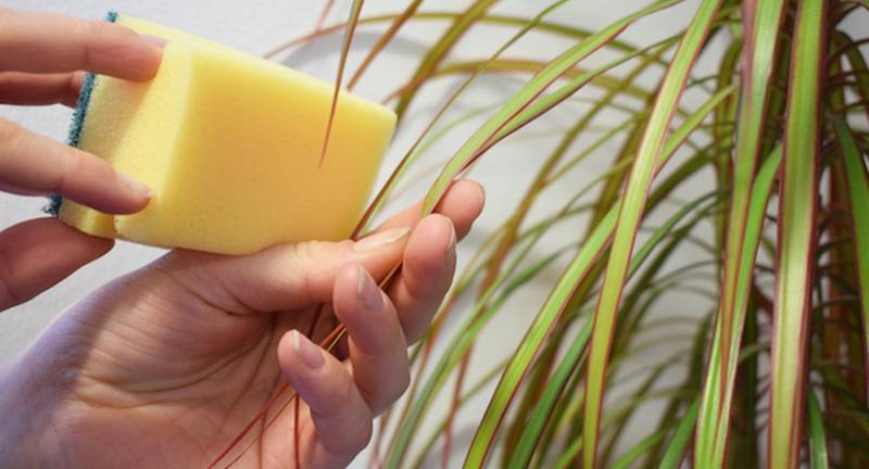 Muốn cho lá cây xanh được sáng bóng, sạch bụi bẩn, bạn hãy lấy miếng rửa chén thấm ít nước sau đó lau chùi nhẹ nhàng lá cây. Đảm bảo lá cây sẽ xanh mướt trong thời gian dài.
