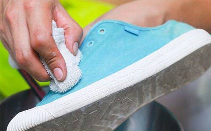 Tiếp theo dùng khăn nhúng vào dung dịch vừa được hòa tan rồi thấm lên đế giày, lấy chính chiếc khăn đó chà đi chà lại phần đến giày hoặc dùng bàn chải chà, chỉ sau vài giây đảm bảo đế giày sẽ sạch bóng như mới. Cuối cùng bạn chỉ cần xả sơ lại với nước và đem đi phơi nắng.